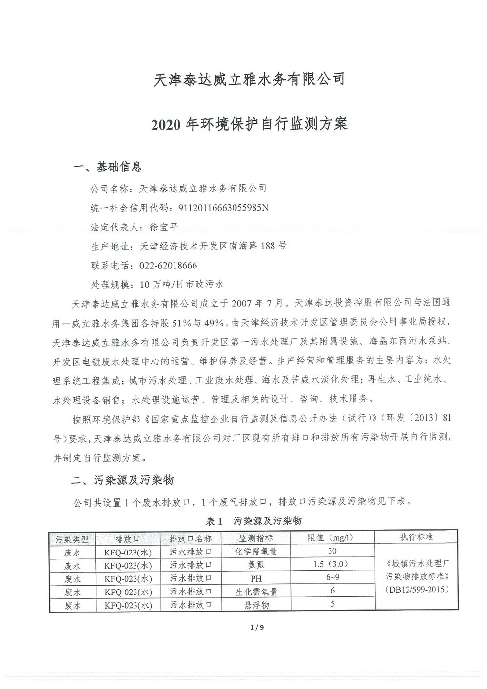 2025年第2季度環境信息公開:天津泰達威立雅水務有限公司