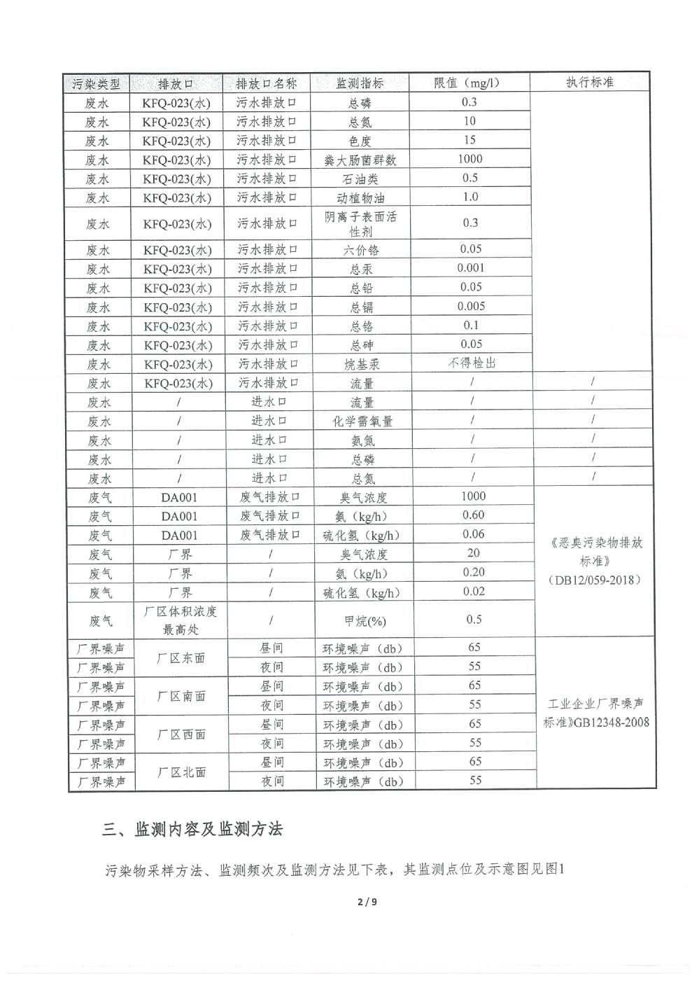 我公司排放口數量為一個,位于廠區東南側。處理后出水排入市政專用排污管道,經北排泵站排入渤海灣。2025年4-6月我公司COD、氨氮、總氮、總磷排放總量如下: